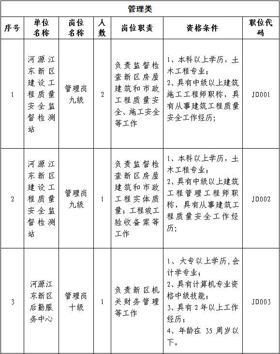 一、公開招考的單位名稱、崗位名稱、人數(shù)、崗位職責、資格條件和職位代碼。