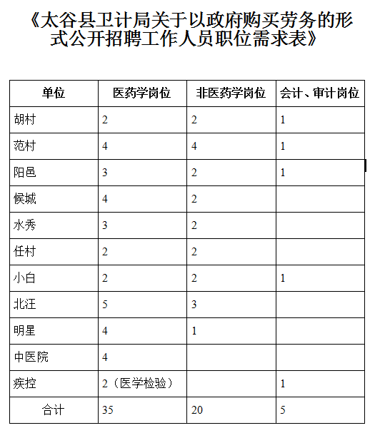 原標題:晉中太谷縣衛(wèi)計局公開招聘60名人員方案