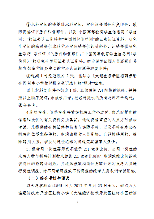 2017大連金普新區(qū)招聘勞動合同制中小學教師93人公告