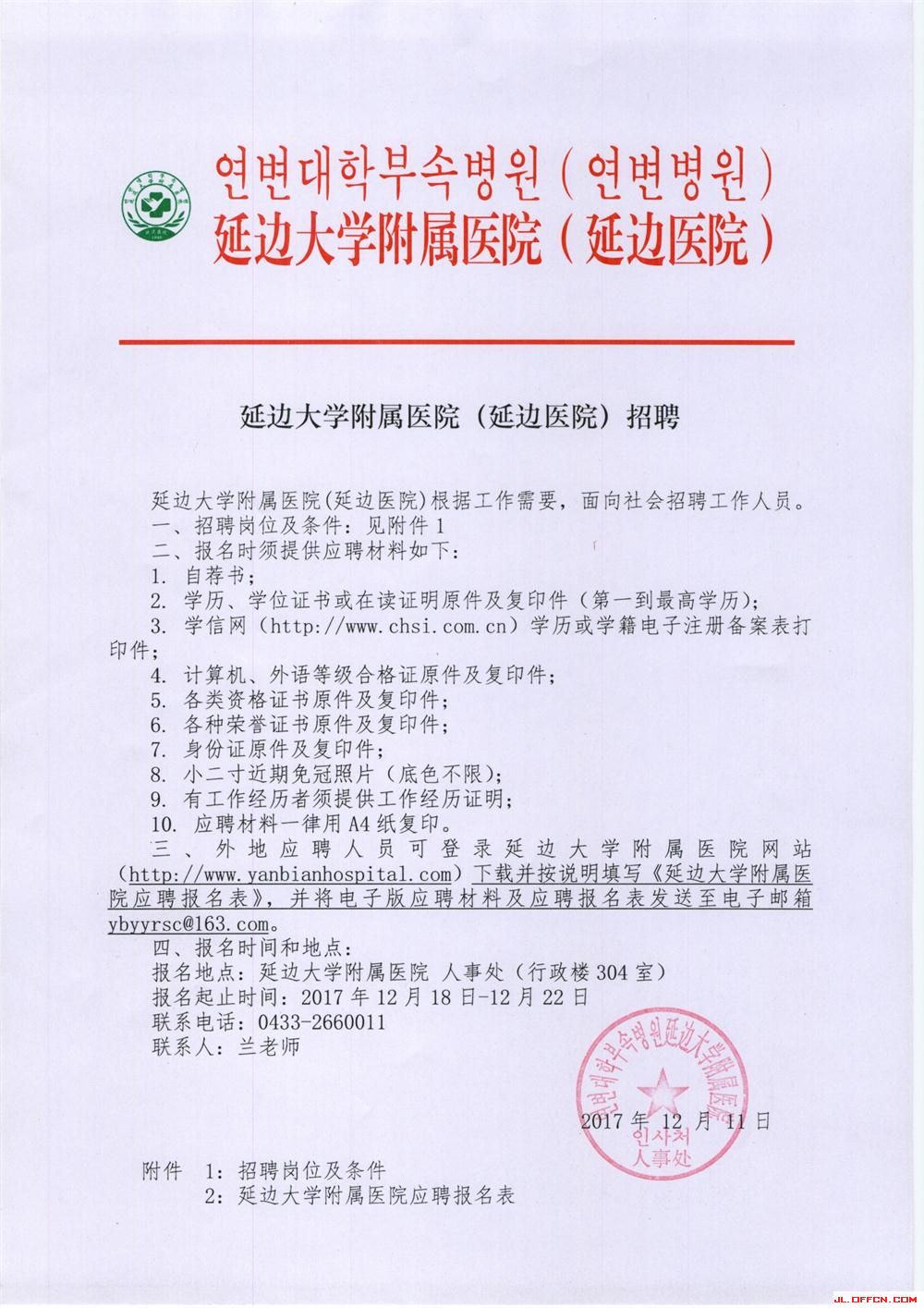 2017年延邊大學(xué)附屬醫(yī)院(延邊醫(yī)院)招聘工作人員公告