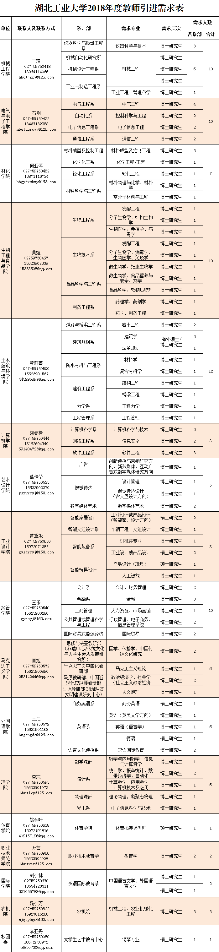 湖北工業(yè)大學(xué)是一所以工學(xué)為主,覆蓋工、文、理、藝、經(jīng)濟(jì)、管、法和教育等八大學(xué)科門類的多科性大學(xué)。創(chuàng)建于1952年,是湖北省重點(diǎn)建設(shè)高校,被省委省政府定位為“在湖北省高教體系中起龍頭示范作用的、水平較高的骨干大學(xué)”。2014年,整體進(jìn)入一本高校行列;2012年、2016年連續(xù)兩次入選國(guó)家“中西部高?;A(chǔ)能力建設(shè)工程”高校。因工作需要,常年招聘兩院院士、中國(guó)社會(huì)科學(xué)院學(xué)部委員、國(guó)家“”、國(guó)家高層次人才特殊支持計(jì)劃(萬(wàn)人計(jì)劃)人選、“百千萬(wàn)人才工程”人選、國(guó)家杰出青年科學(xué)基金獲得者、教育部“長(zhǎng)江學(xué)者獎(jiǎng)勵(lì)計(jì)劃”人選、中科院百人計(jì)劃人選、湖北省“百人計(jì)劃”入選者、湖北省“楚天學(xué)者計(jì)劃”特聘教授、楚天學(xué)子等崗位及海內(nèi)外人才。