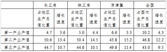 表 2010年三大經(jīng)濟(jì)圈產(chǎn)業(yè)結(jié)構(gòu)及增長速度(%)