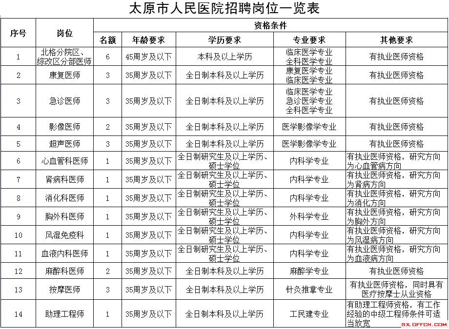 地址:山西省太原市迎澤區(qū)杏花嶺6號,太原市人民醫(yī)院行政樓二層人事科。