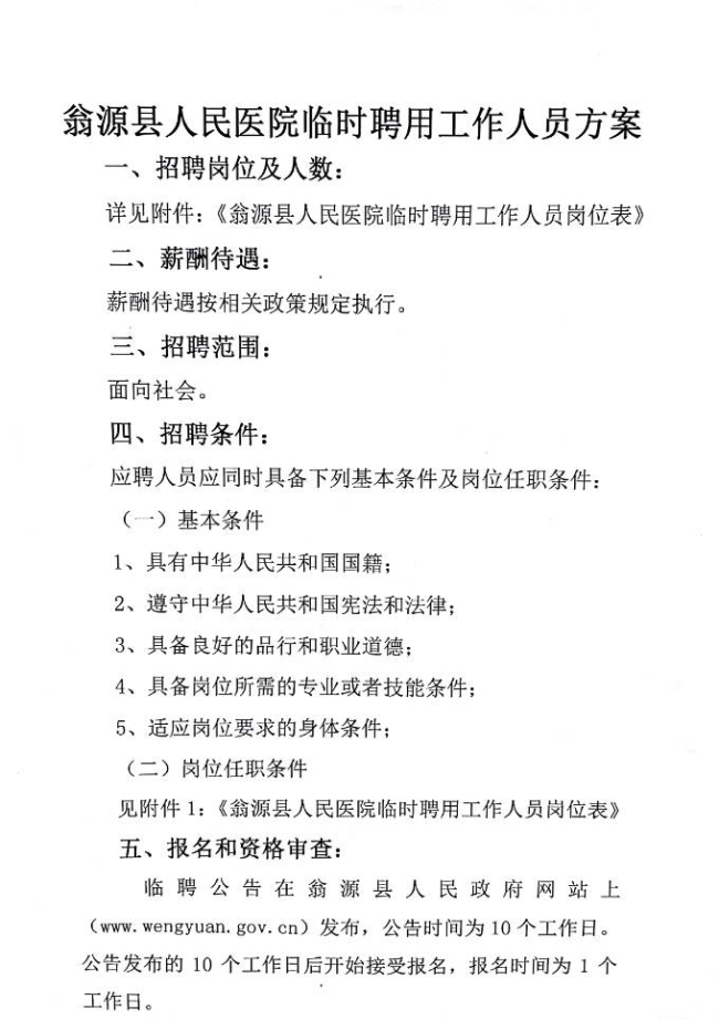 原標題:2018年翁源縣人民醫(yī)院臨時聘用工作人員方案