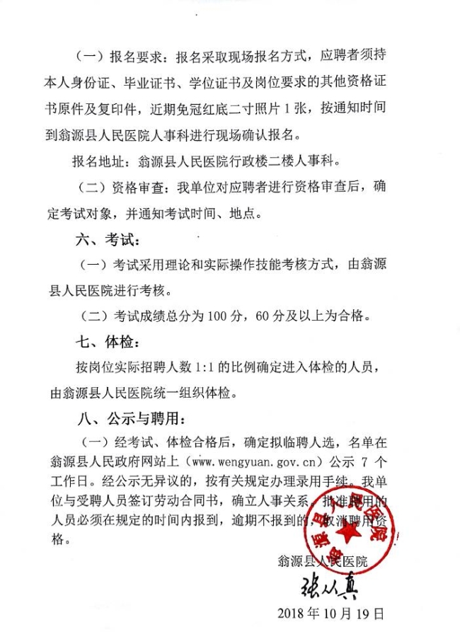 2018廣東韶關(guān)市翁源縣人民醫(yī)院臨時聘用人員12人方案