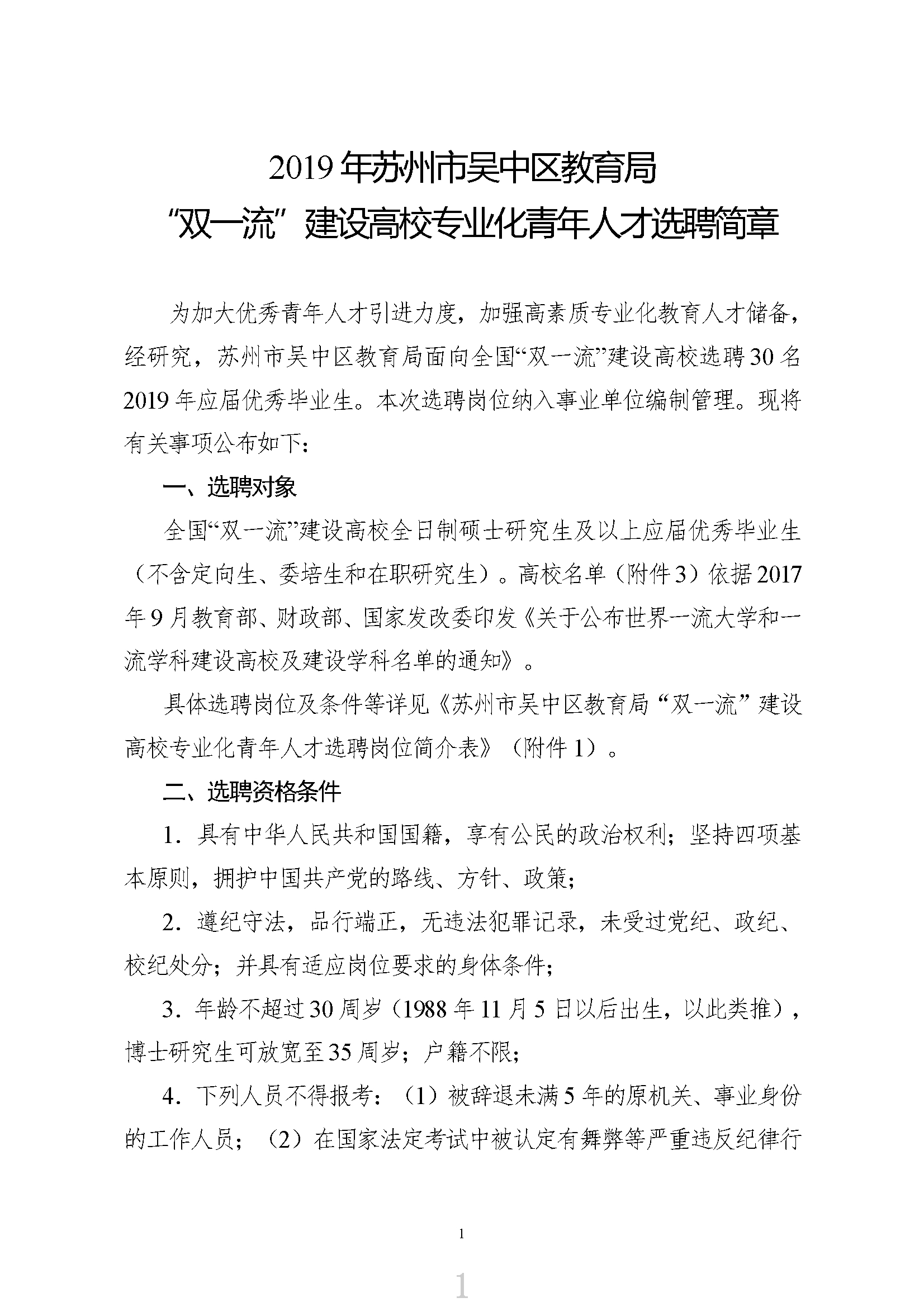原標(biāo)題:2019年蘇州市吳中區(qū)教育局“雙”建設(shè)高校專業(yè)化青年人才選聘簡(jiǎn)章
