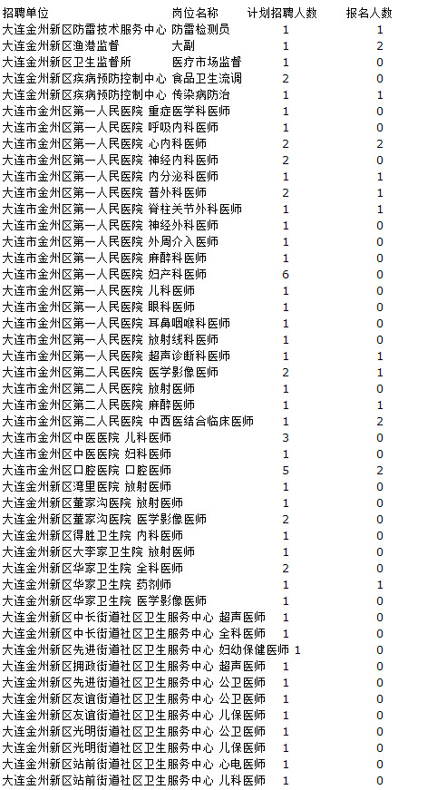 根據(jù)《2015年大連金州新區(qū)部分事業(yè)單位公開招聘工作人員公告》規(guī)定和報名情況,由于此次公開招聘中有55個招聘崗位的有效報考人數(shù)未達(dá)到3:1比例的規(guī)定,現(xiàn)將取消和縮減崗位情況公告如下: