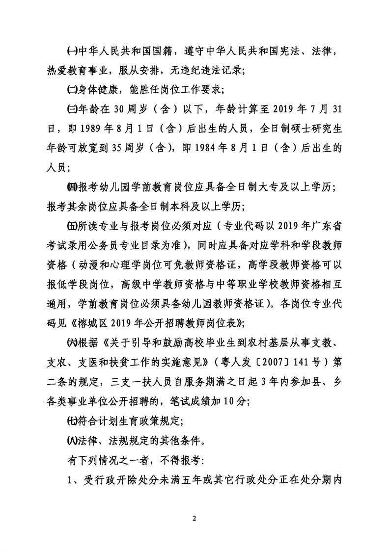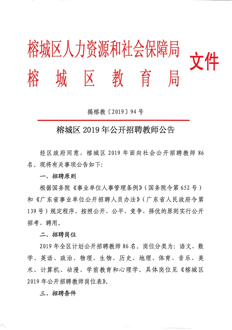 2019廣東揭陽榕城區(qū)招聘教師86人公告