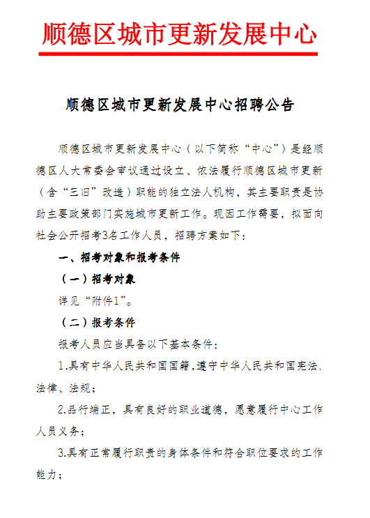2015年廣東省佛山順德區(qū)城市更新發(fā)展中心招聘3人公告