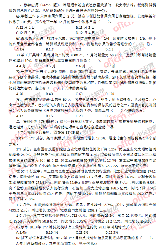 2014上海市公務(wù)員考試行測(cè)(B類)