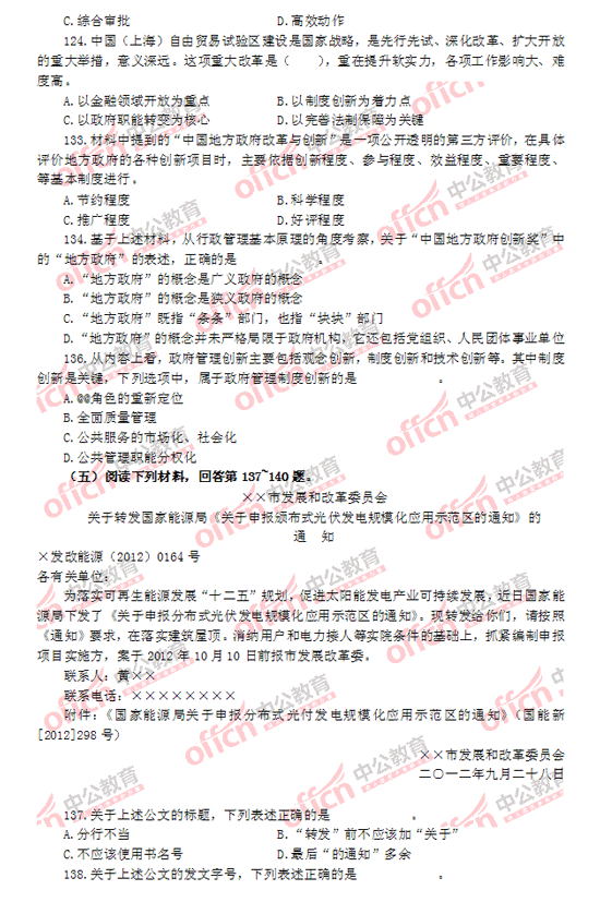 2014上海市公務(wù)員考試行測(cè)(A類)