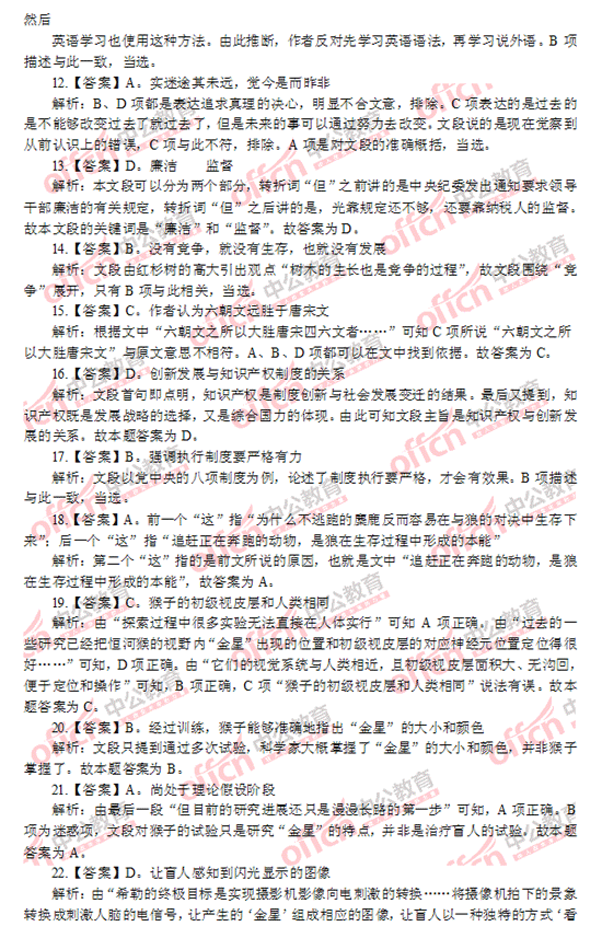 2014上海市公務(wù)員考試行測(cè)答案解析(A類(lèi))
