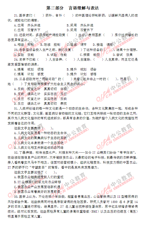 2012年廣東縣以上公務(wù)員考試行測(cè)