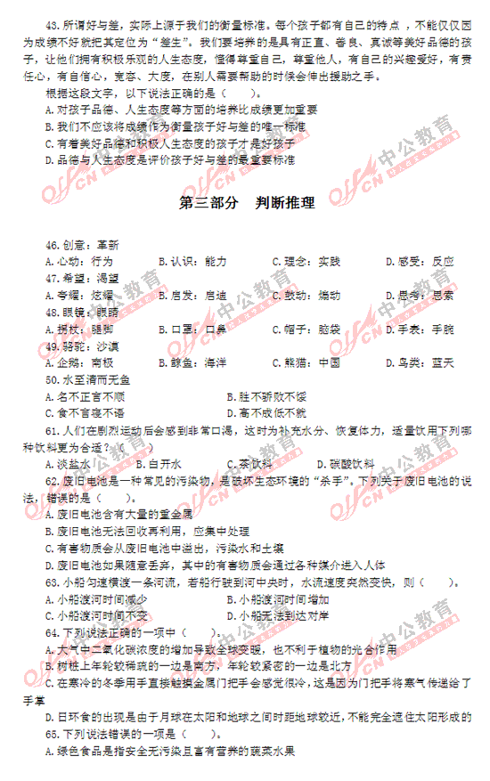 2012年廣東縣以上公務(wù)員考試行測(cè)
