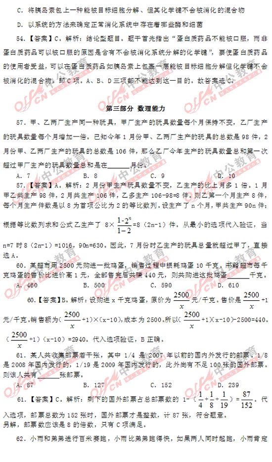 2011上海市公務(wù)員考試行測(cè)(A類)部分答案及解析