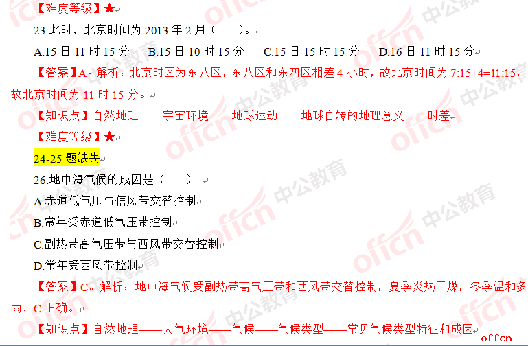2017年江西教師招聘《高中地理》試題答案及解析