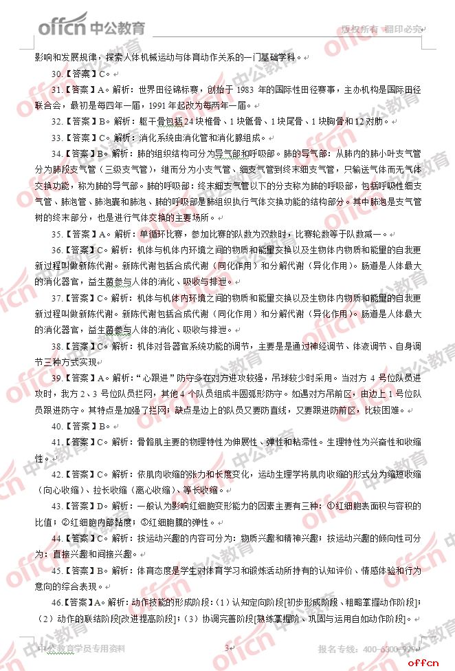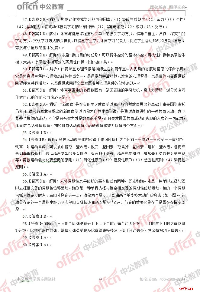 2017年江西教師招聘《中學(xué)體育》試題答案及解析