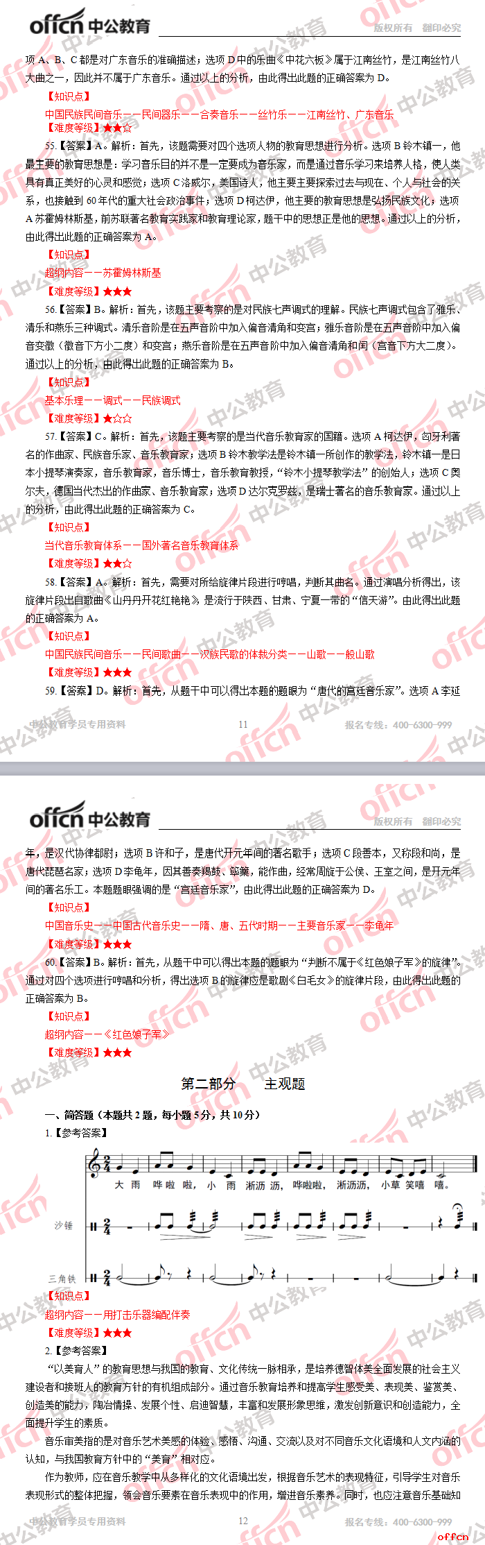 2017年江西教師招聘《小學(xué)音樂(lè)》試題答案及解析