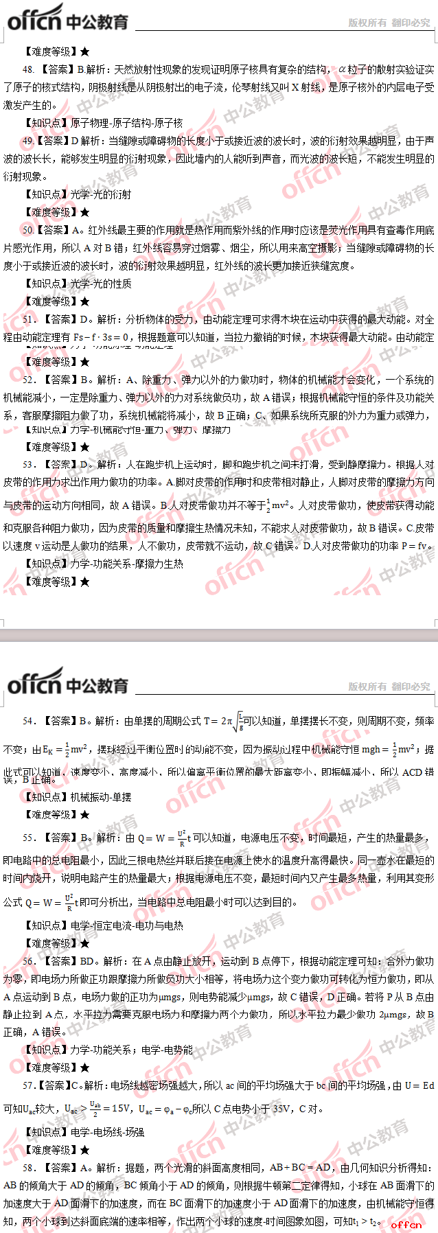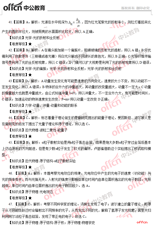 2017年江西教師招聘《高中物理》試題答案及解析
