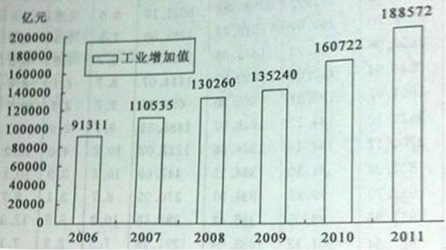 C.2006年,我國(guó)全部工業(yè)增加值不足2011年的一半