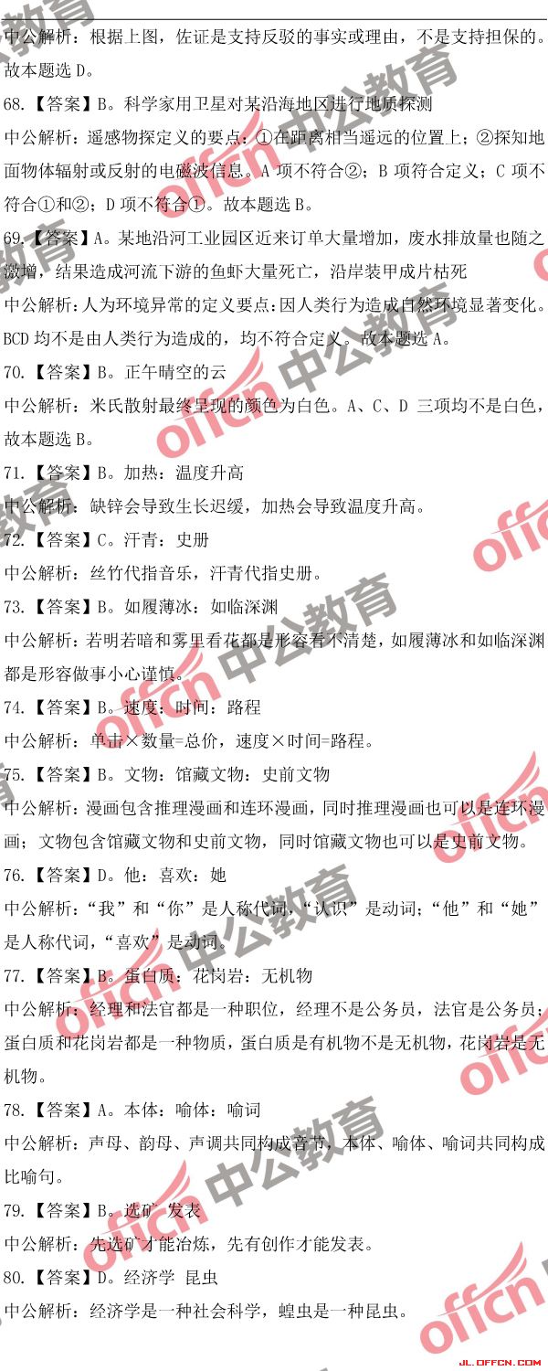 2018吉林公務(wù)員考試行測(甲)歷年參考答案及解析