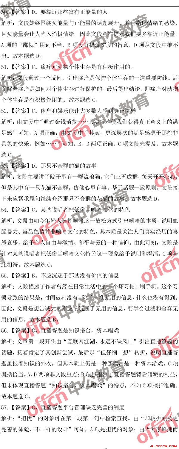 2018吉林公務(wù)員考試行測(cè)(乙)歷年參考答案及解析
