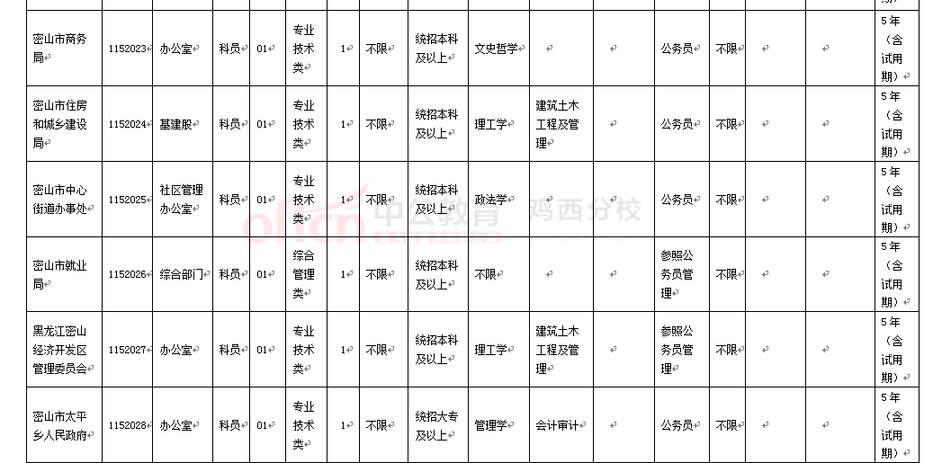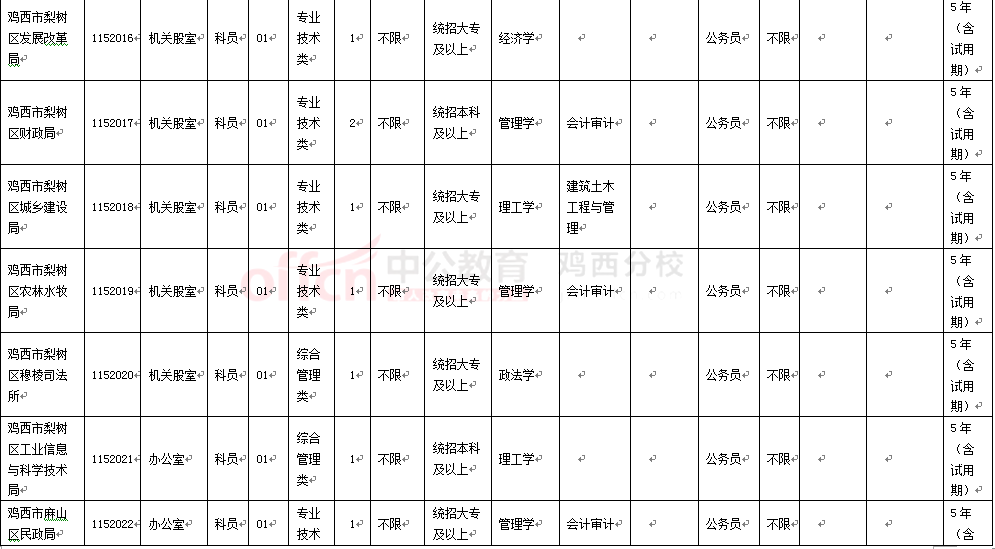 2015年黑龍江省艱苦邊遠(yuǎn)地區(qū)公務(wù)員考試招錄雞西地區(qū)職位表