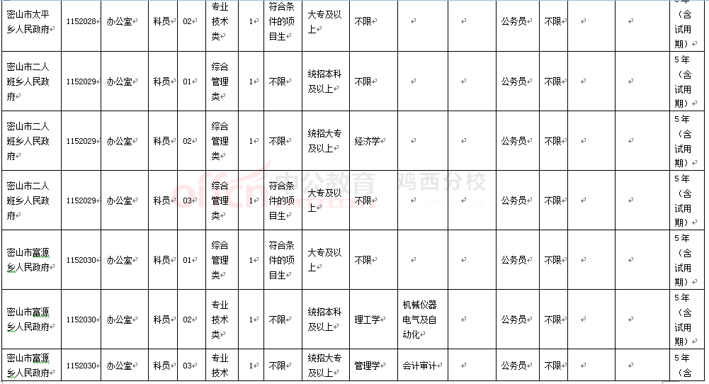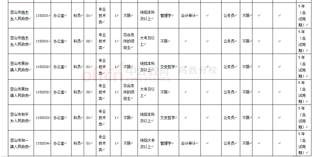 2015年黑龍江省艱苦邊遠(yuǎn)地區(qū)公務(wù)員考試招錄雞西地區(qū)職位表