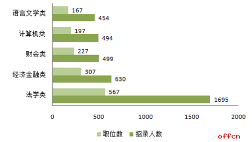 此外,還有433個職位不限制專業(yè),占總職位數(shù)的20.27%,所學(xué)專門比較冷門的考生可以考慮這些職位。