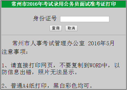 2016江蘇常州市公務(wù)員考試面試準(zhǔn)考證打印入口