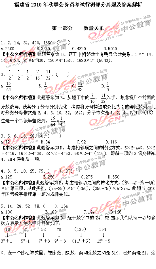 福建省2010年秋季公務(wù)員考試行測(cè)及解析